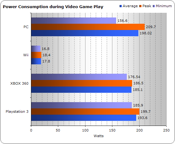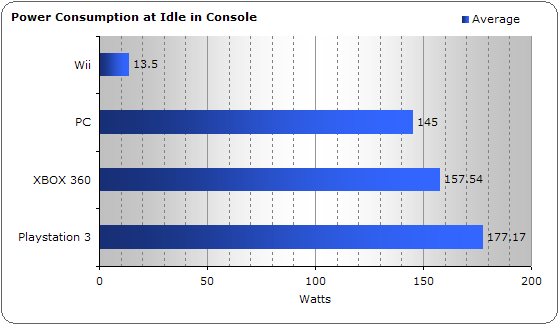 Pada saat bermain game, Nintendo Wii adalah konsol dengan konsumsi terkecil yaitu 18 Watt saja secara rata-rata apalagi bila dibandingkan dengan komputer PC biasa.
