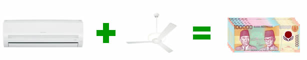 Untuk dirumah pun begitu. Bila anda di area yang cukup adem, mungkin anda akan sudah merasa cukup dengan menggunakan kipas angin, apakah yang terpasang di plafon atau yang berdiri. Tetapi untuk daerah yang cukup panas, kombinasi antara AC dan kipas angin akan banyak bermanfaat dan menghemat juga. AC di rumah yang 1PK menggunakan antara 800-1200 Watt listrik, dimana kipas angin dirumah bisa hanya menggunakan 40-60 Watt listrik saja atau hanya sekitar 5-10% listrik. Anda dapat bayangkan penghematan yang bisa didapatkan. Terlebih lagi, harga beli kipas angin dan AC sungguh jauh berbeda. Dari itu pun anda sudah dapat banyak menghemat.