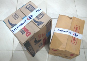 Terakhir saya ke Carrefour begitu ramainya sampai kantong plastik mereka pun habis sehingga mereka menawarkan untuk memakai box karton. Saya pun langsung setuju karena kadang untuk barang yang cukup banyak memakai banyak kantong pun sangat boros dan malah sulit dibawa.
